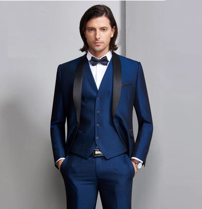 - Research well before purchasing online New Arrival Customized Shawl Black Lapel Groom Tuxedos Wedding Best Man Blazer 3 Pieces (Jacket+Pants+Vest) Royal Blue Men Suit